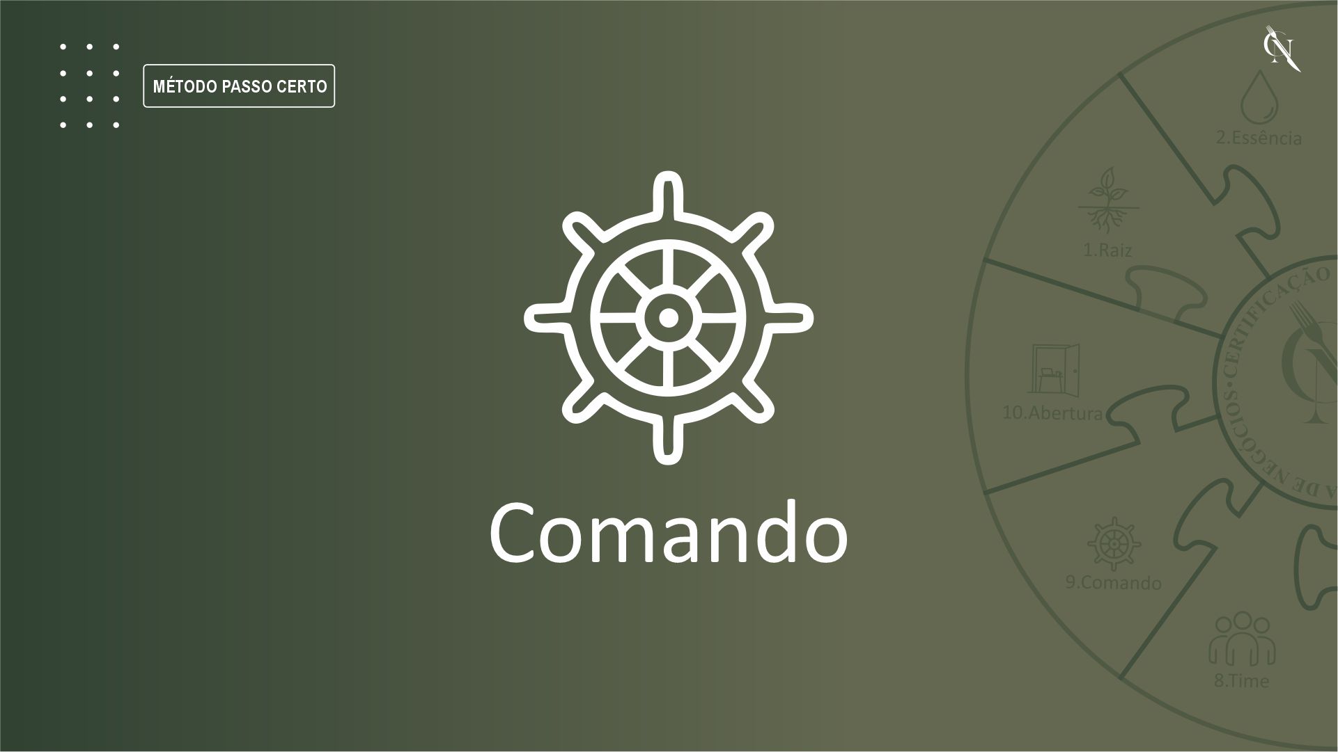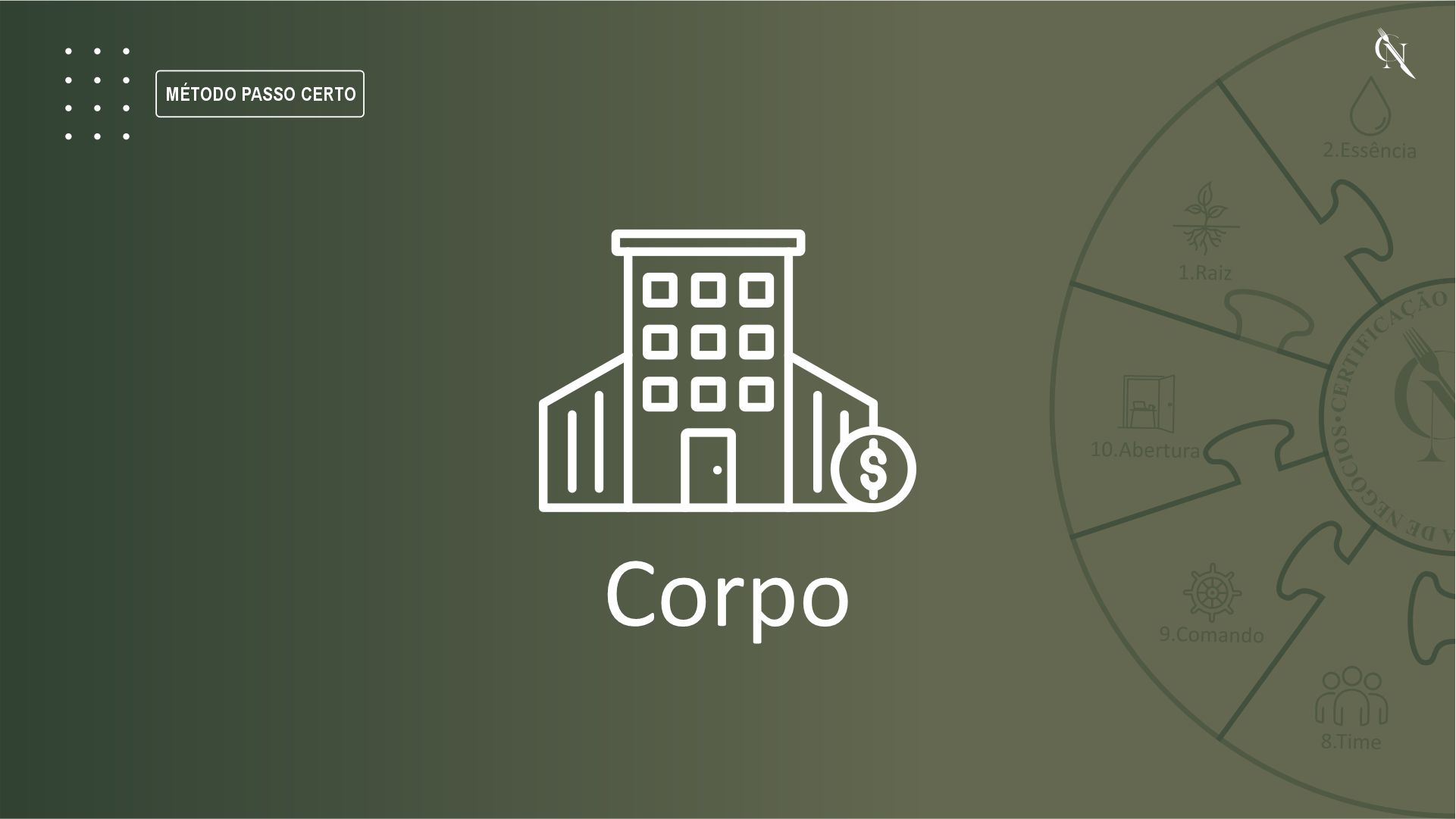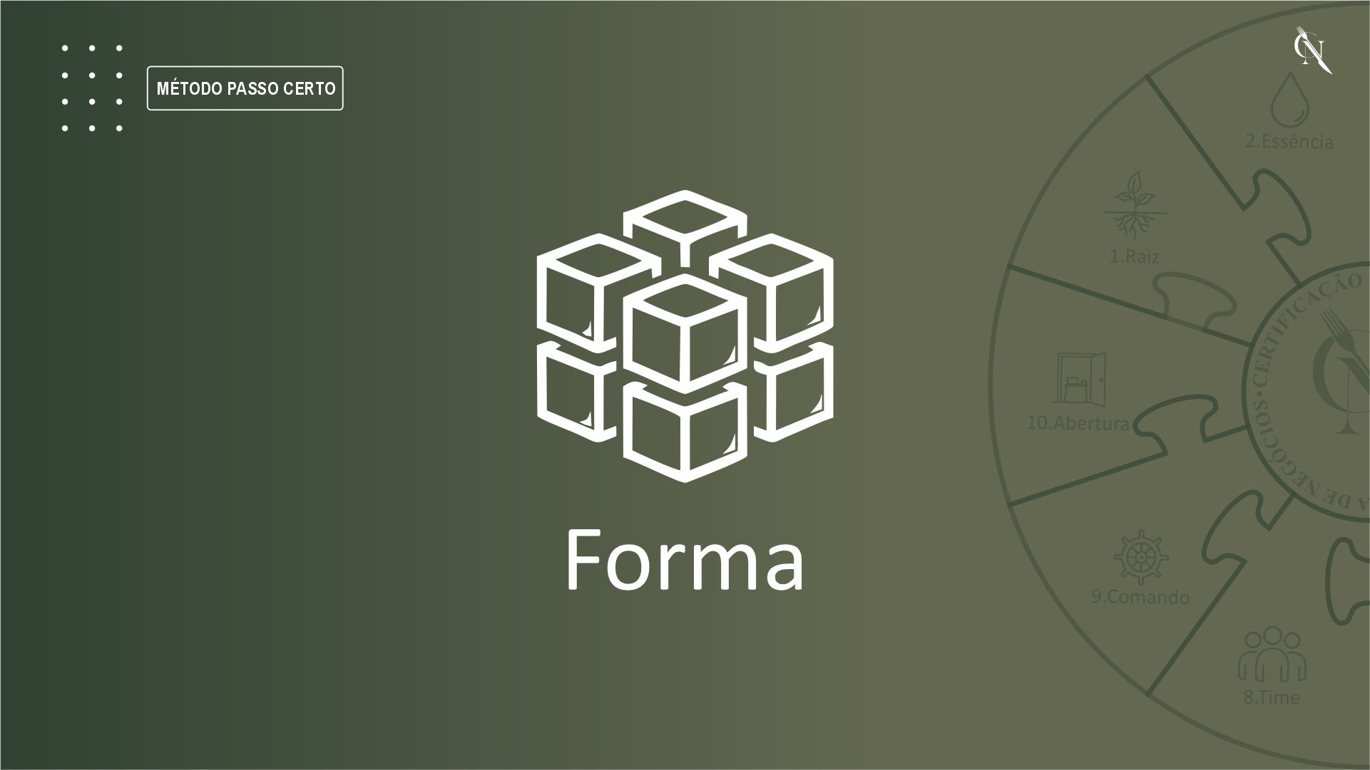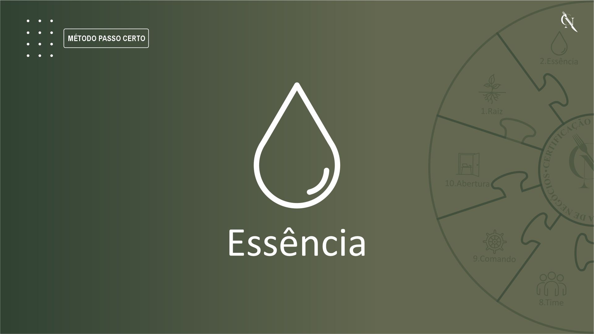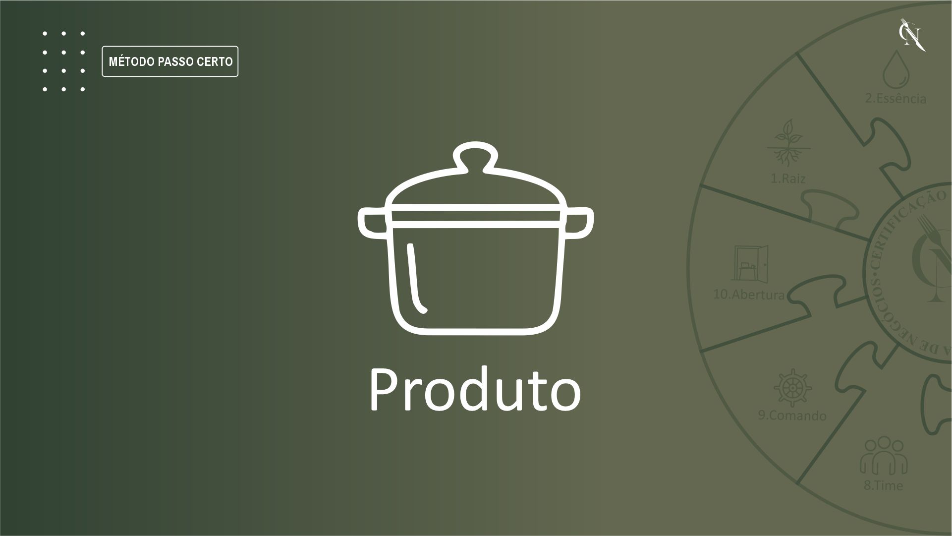 O Método Passo Certo é uma jornada estruturada e sequencial, organizada em 10 passos obrigatórios, que conduzem o empreendedor por todas as fases iniciais de um negócio gastronômico.