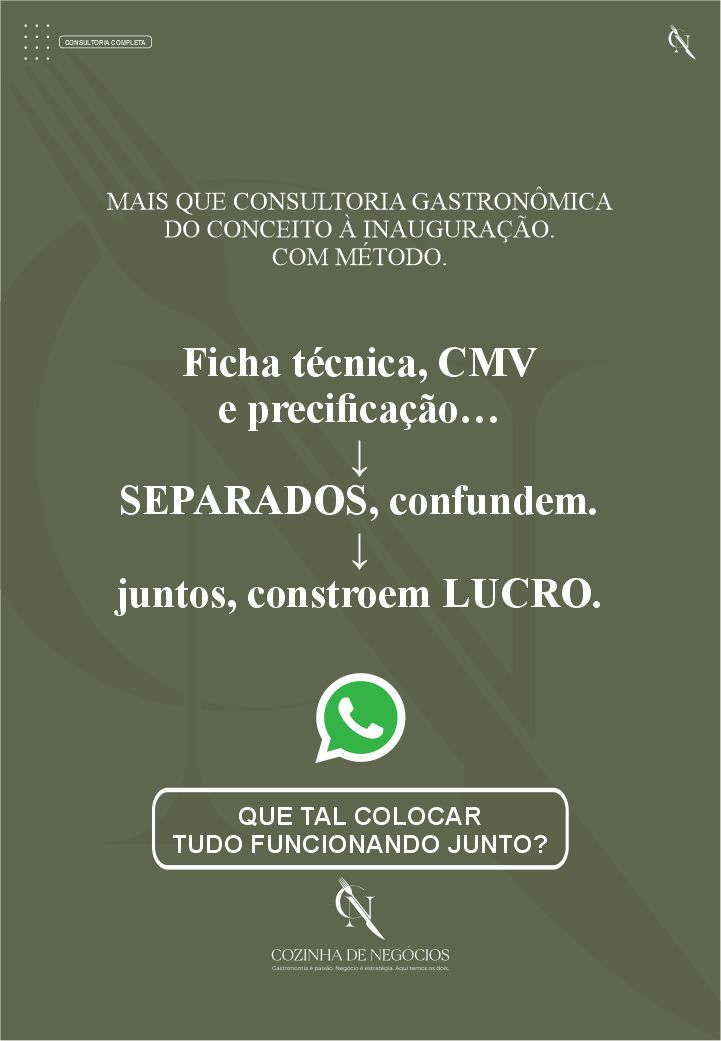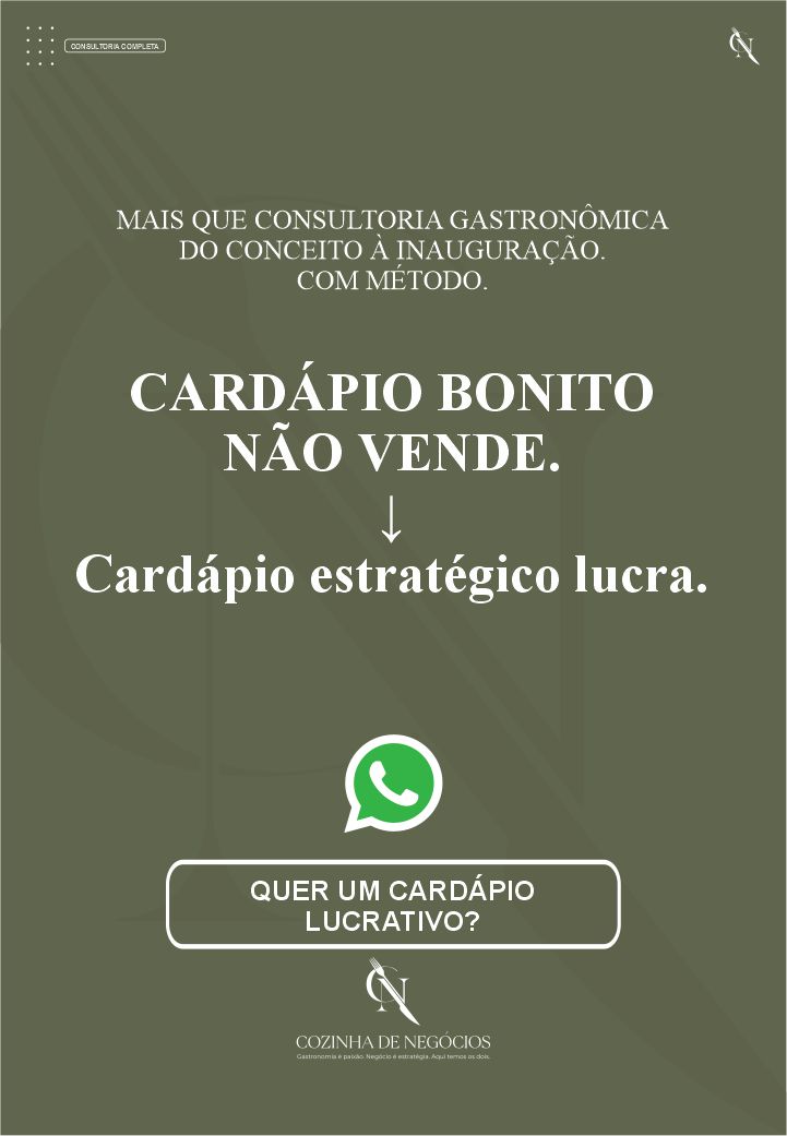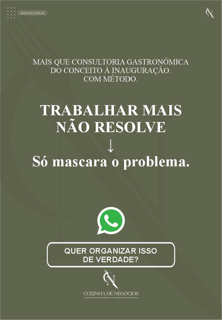 Cada elemento foi pensado para conduzir o empreendedor gastronômico com clareza, evitando improvisos, erros recorrentes e decisões desalinhadas que comprometem a operação ao longo do tempo.